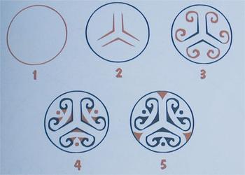 A természet elemei (mangólevél, lángnyelv, esőcsepp) ihlették. A bőség jelképe.